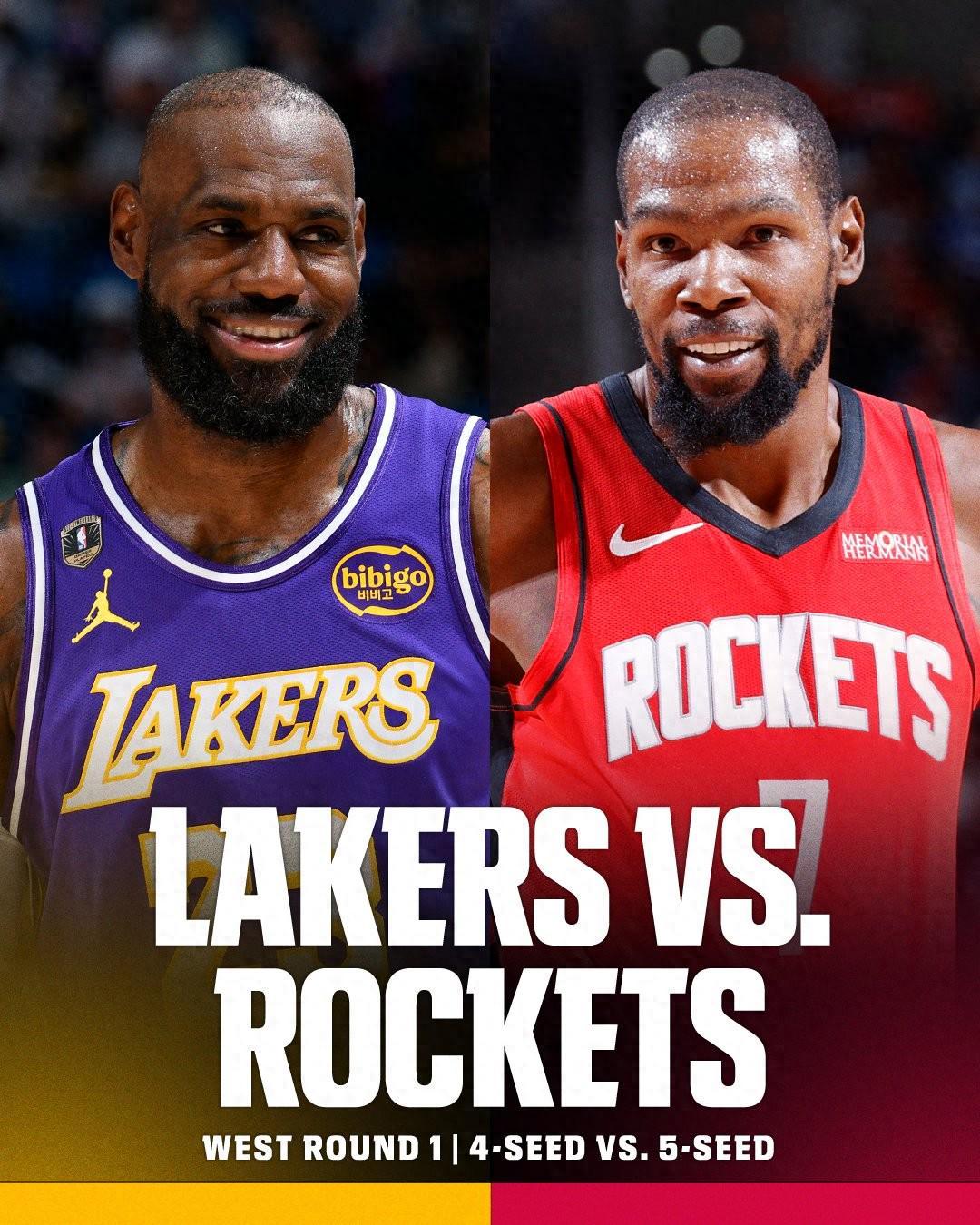 随着常规赛最后一轮争夺结束,西部首轮两组对决随之敲定,其中就包括万众瞩目的西部第四湖人VS西部第五火箭。